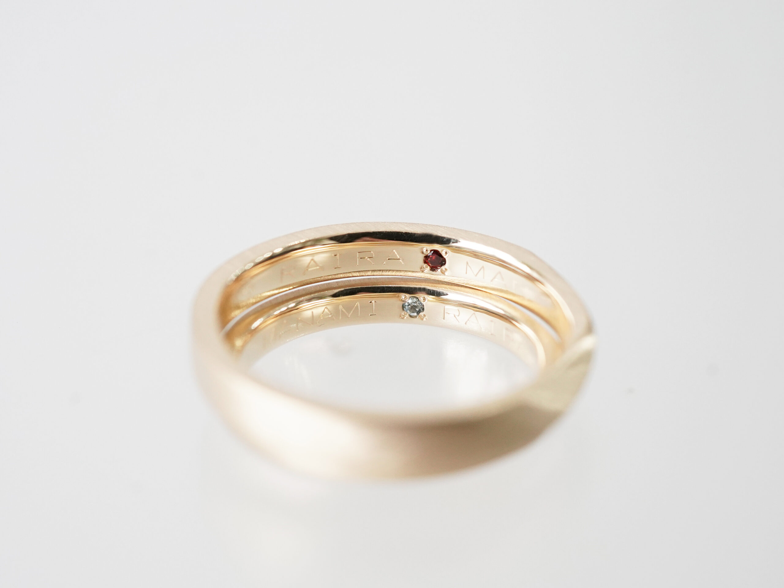 内側には誕生石もシークレットストーンとしてお留めし、外したときもお守りのような輝きに心踊る、そんな素敵なご結婚指輪が完成いたしました。