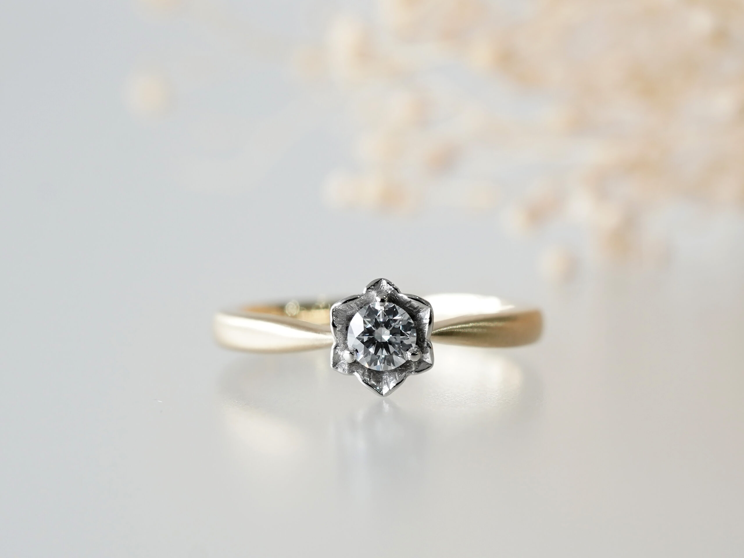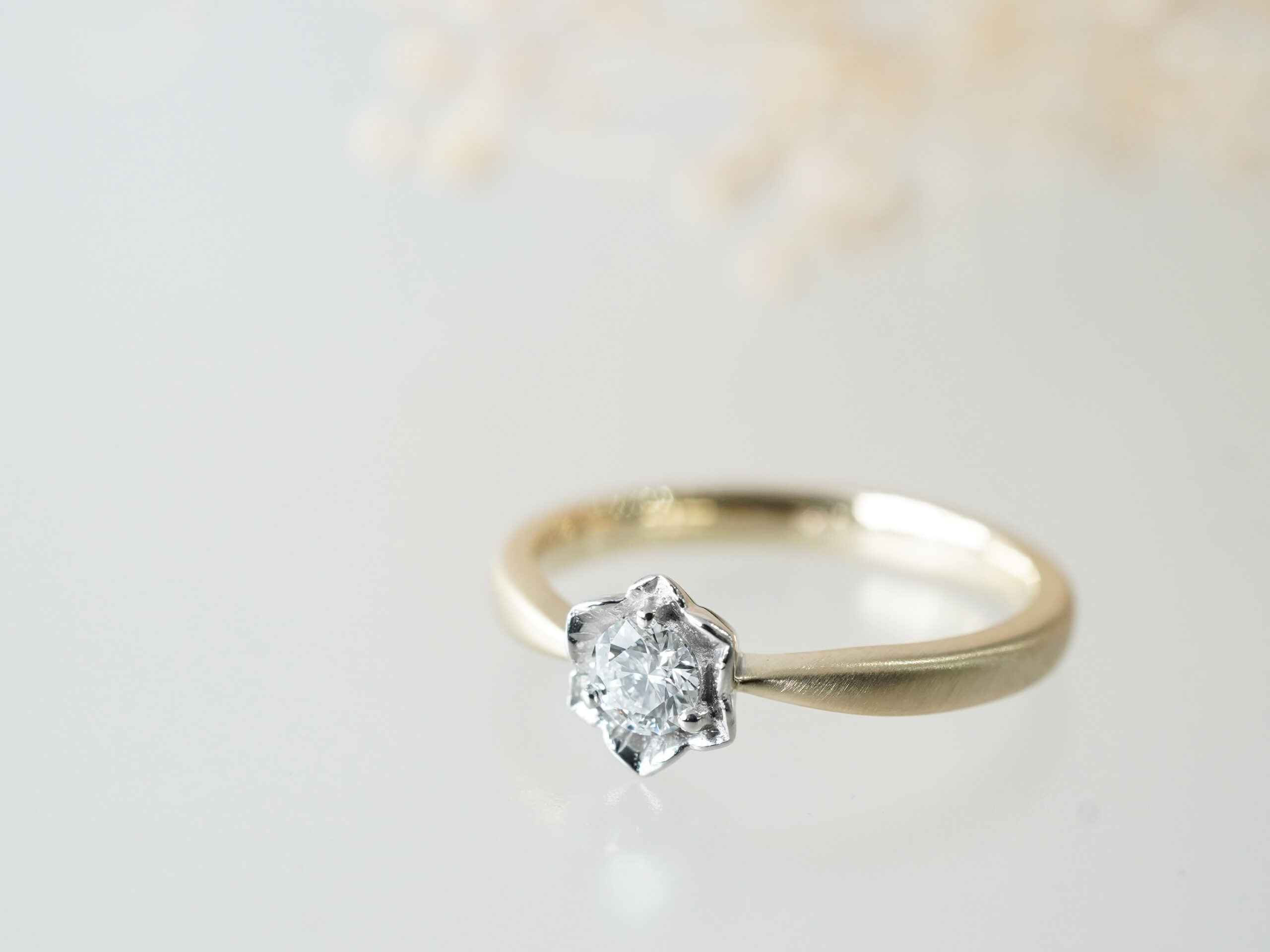 柔らかな陽だまりのなかに一輪の水仙がそっと咲くように、そんな情景を感じるご婚約指輪をオーダーメイドでお仕立ていたしました。