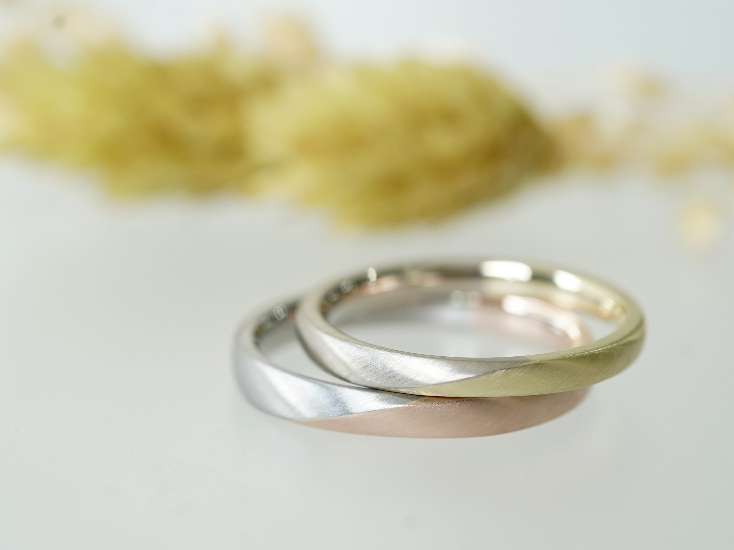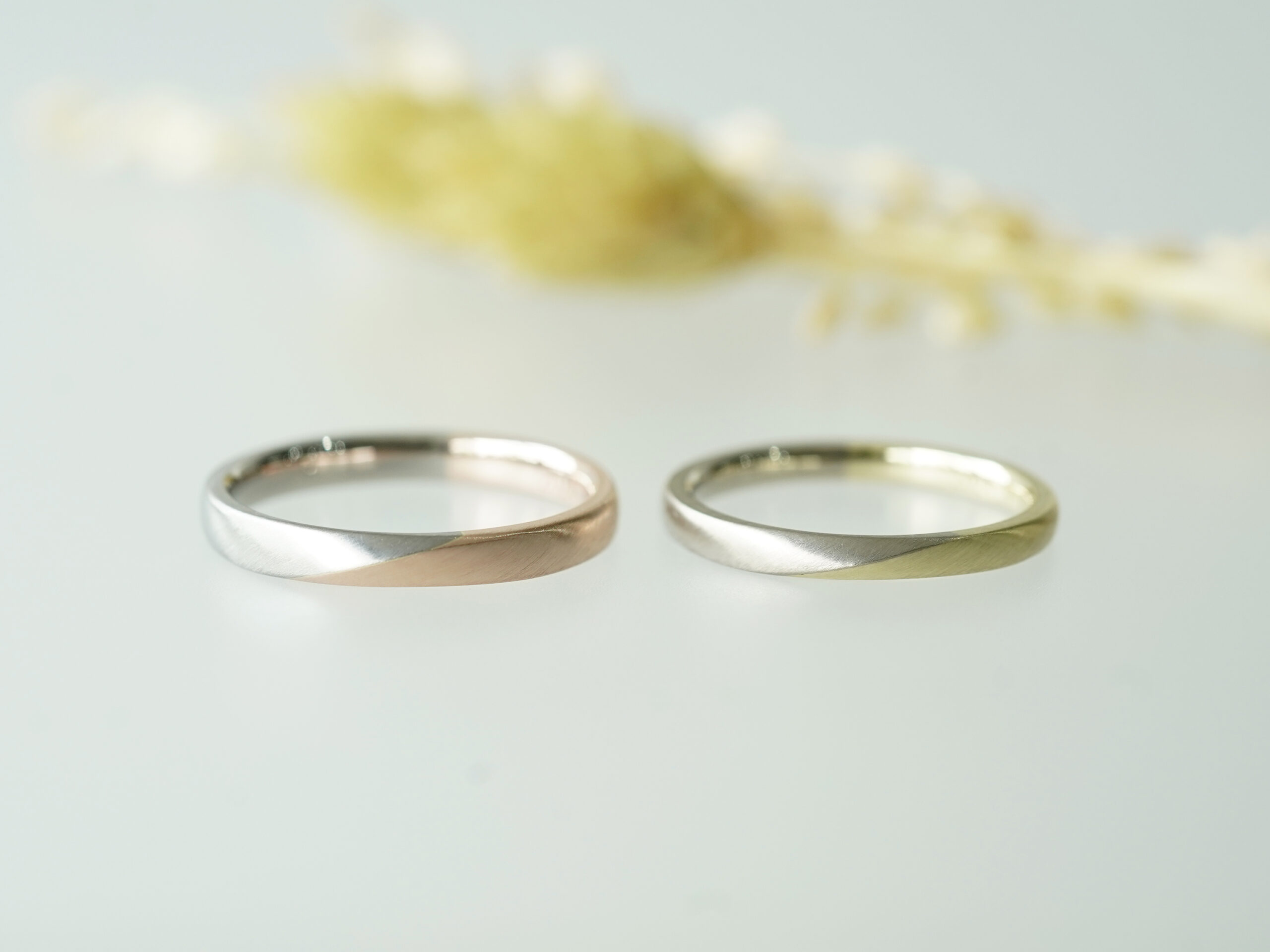 メンズデザインは、グレーゴールドとピンクゴールドを選んでいただきました。