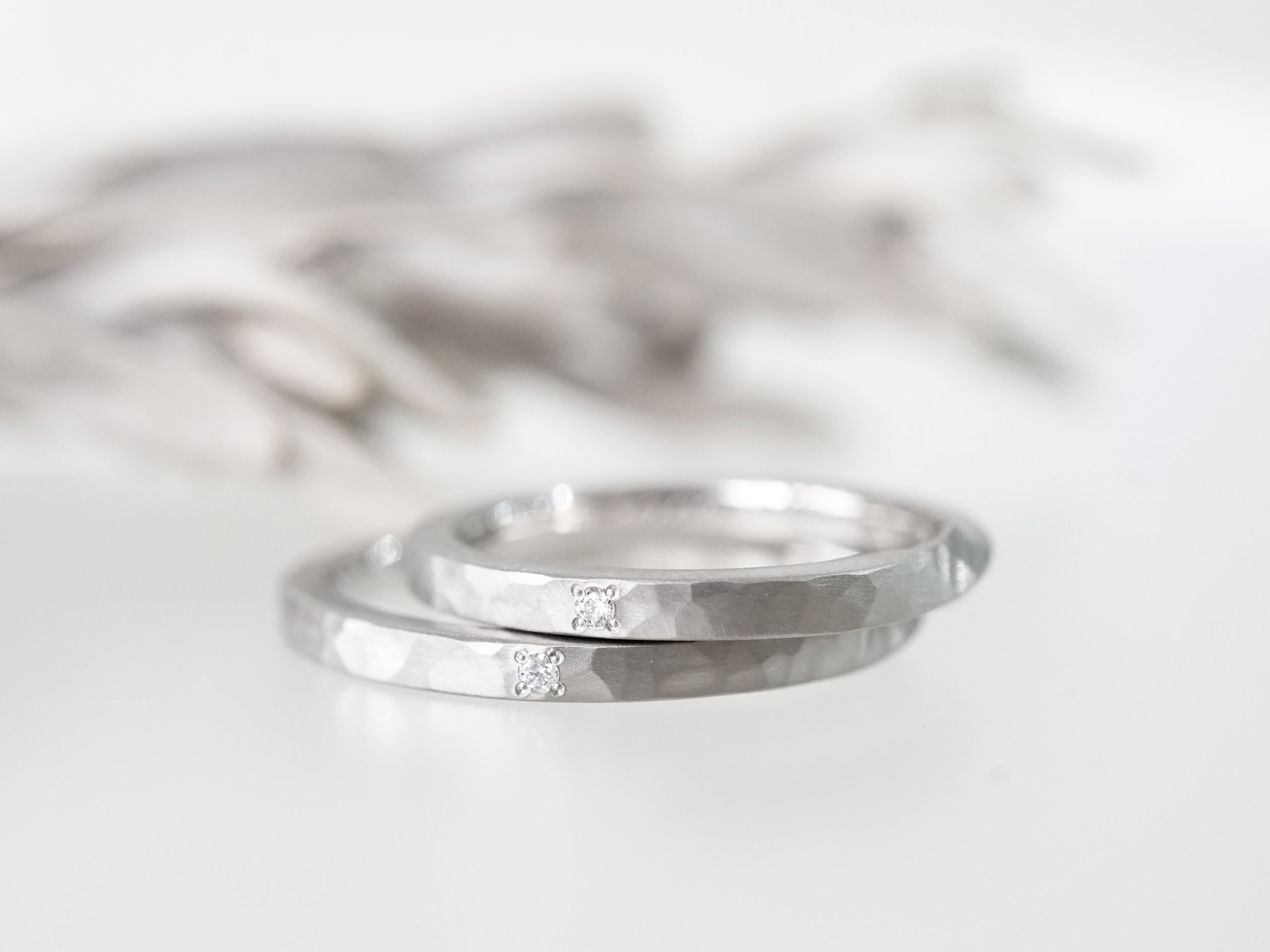 また、鎚目の面にはさりげなく小さなダイヤモンドを1石セッティング。