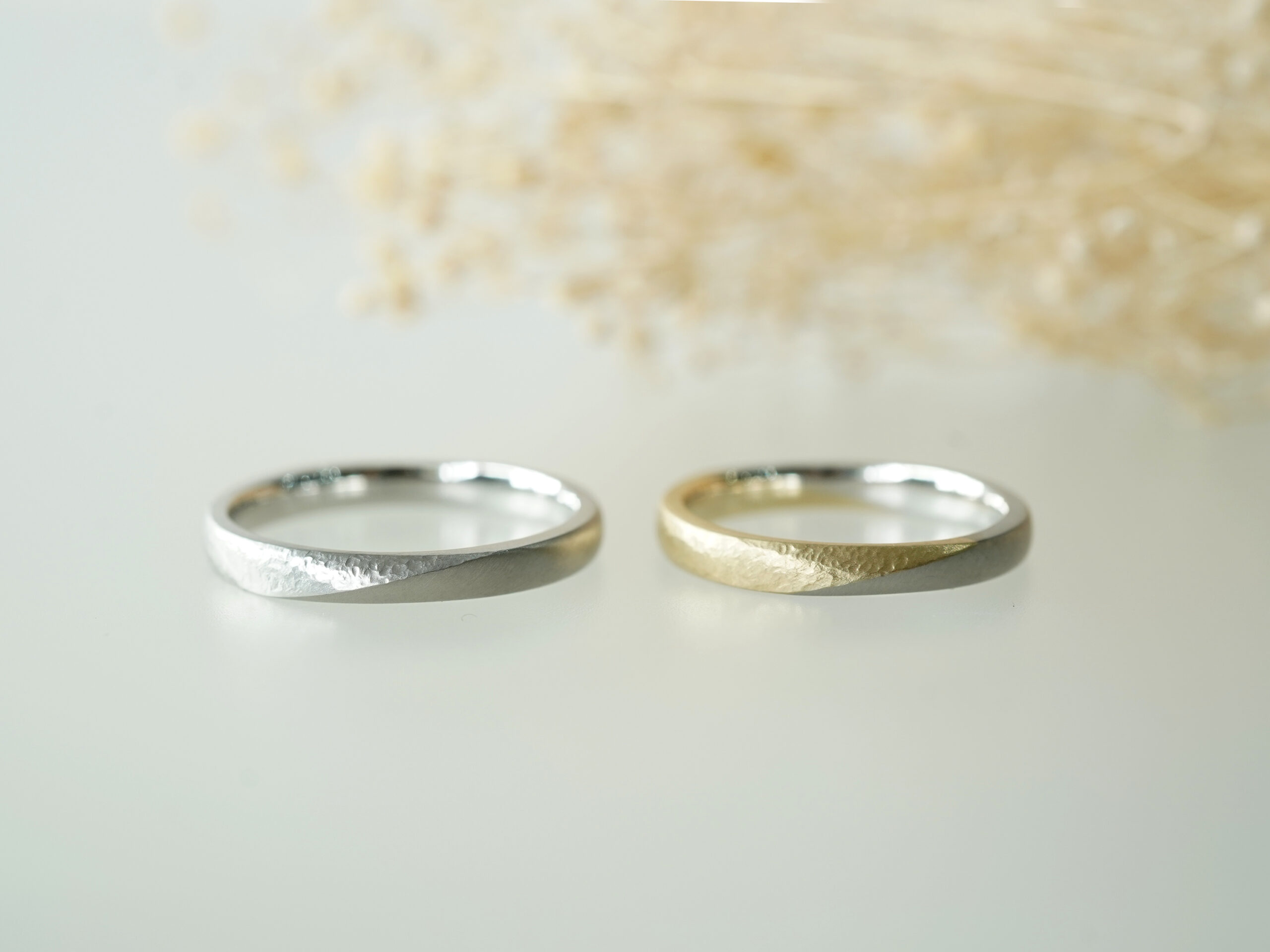 ベースとなるデザインを統一し、素材はおふたりのお好みでお選びいただきました。