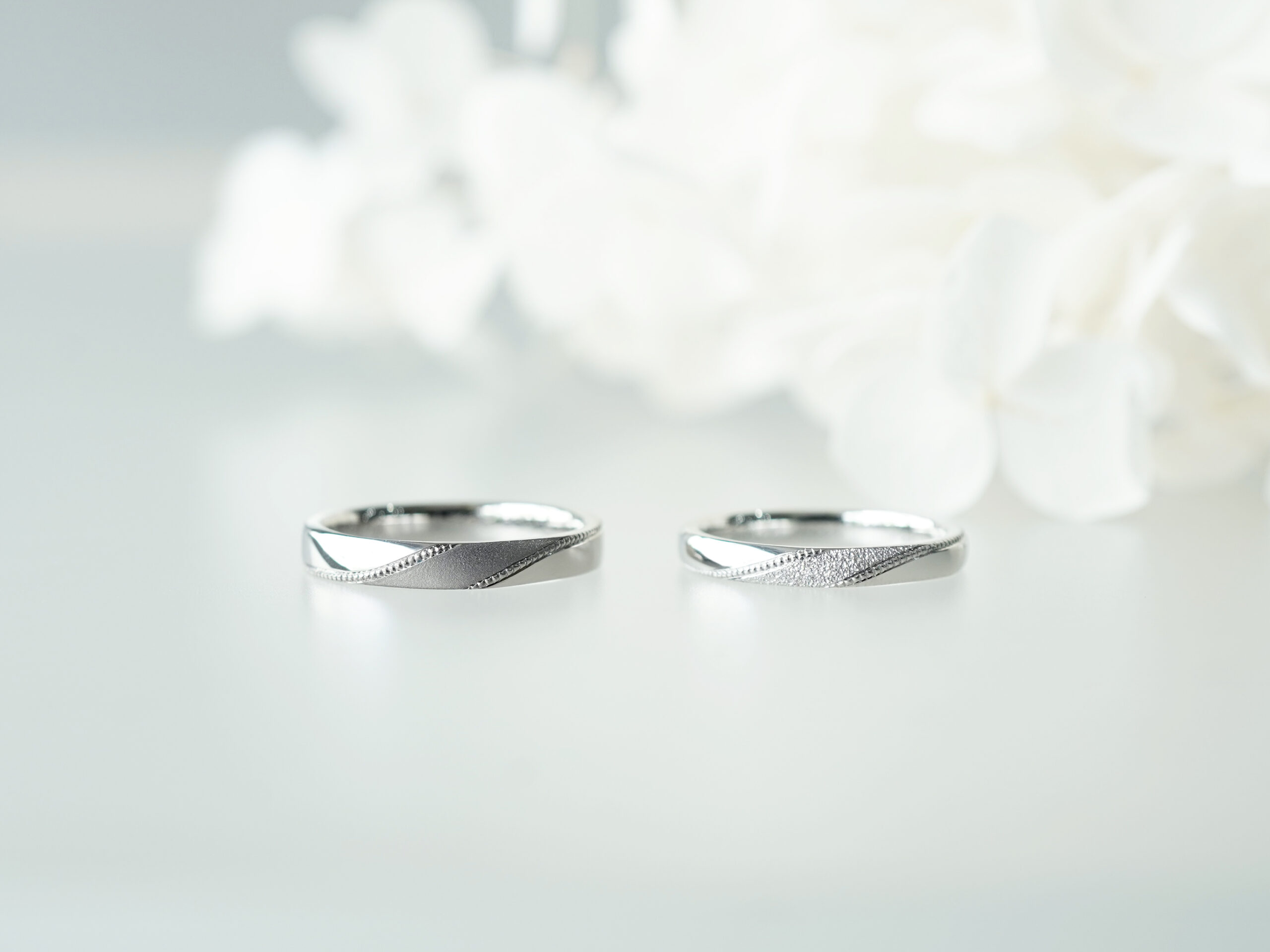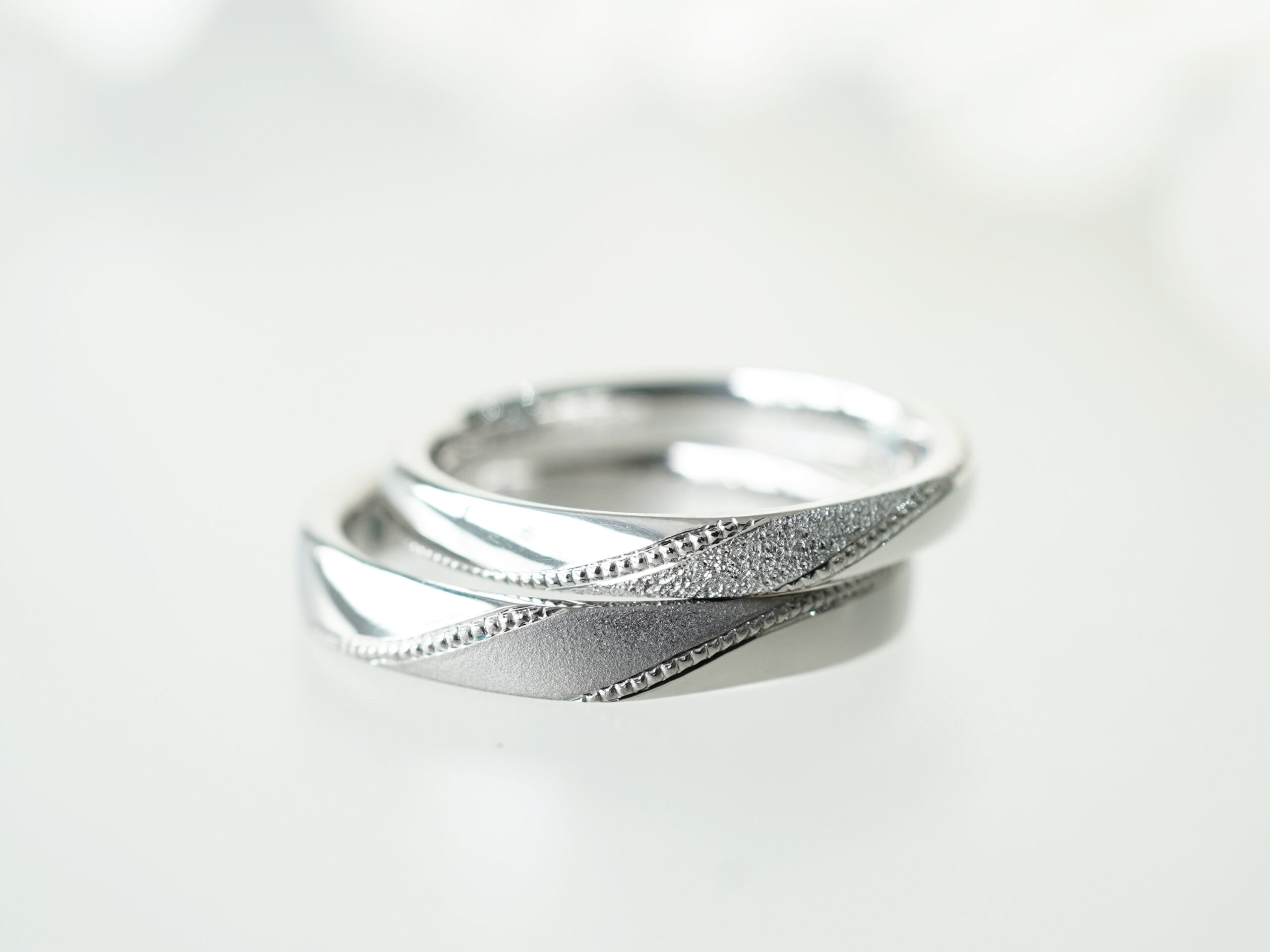 そして、指輪のアクセントとなるテクスチャーは、それぞれ違うものを。