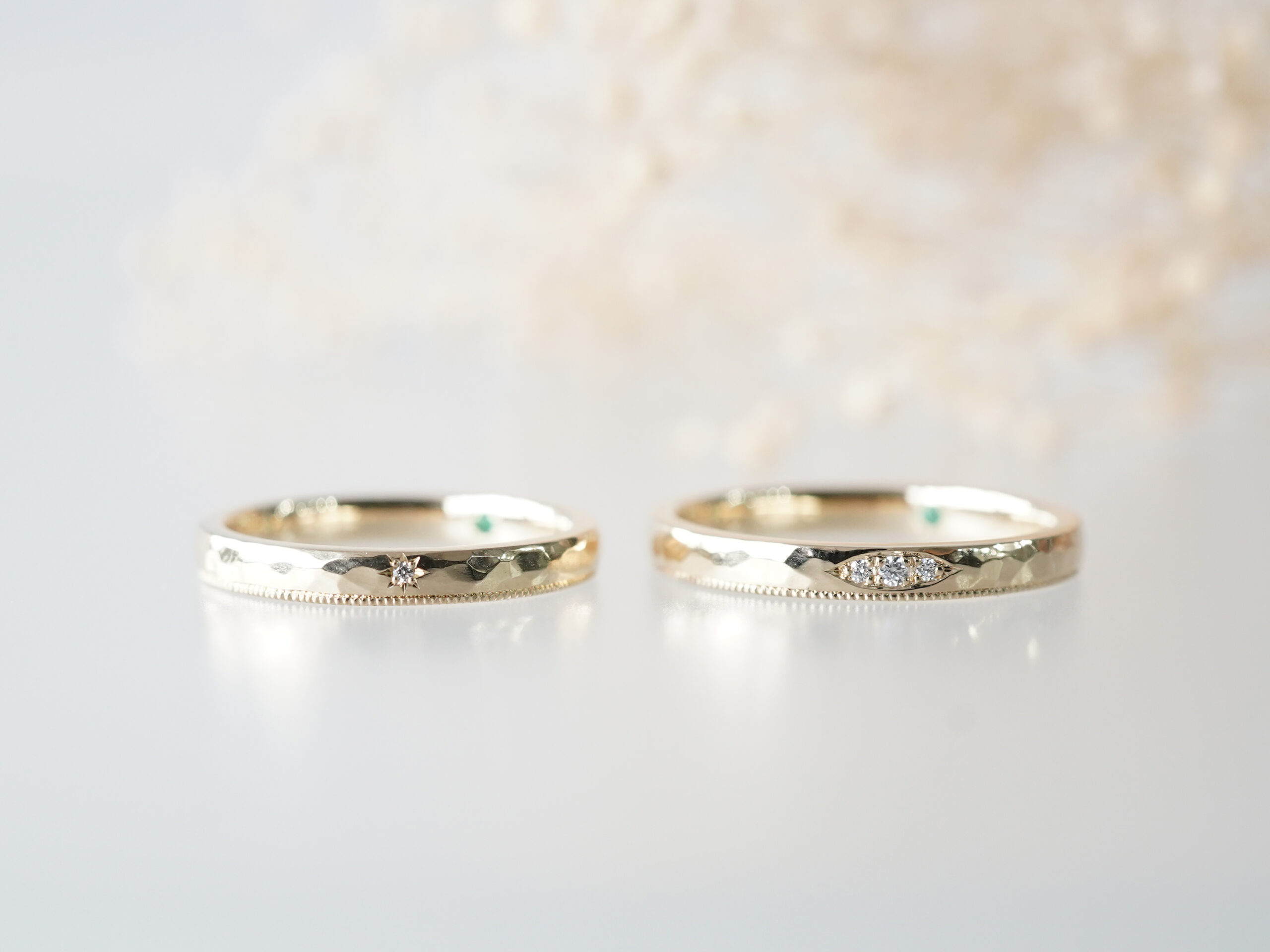 手づくりならではの温もりと、繊細な職人技が調和した素敵なご結婚指輪の完成です。