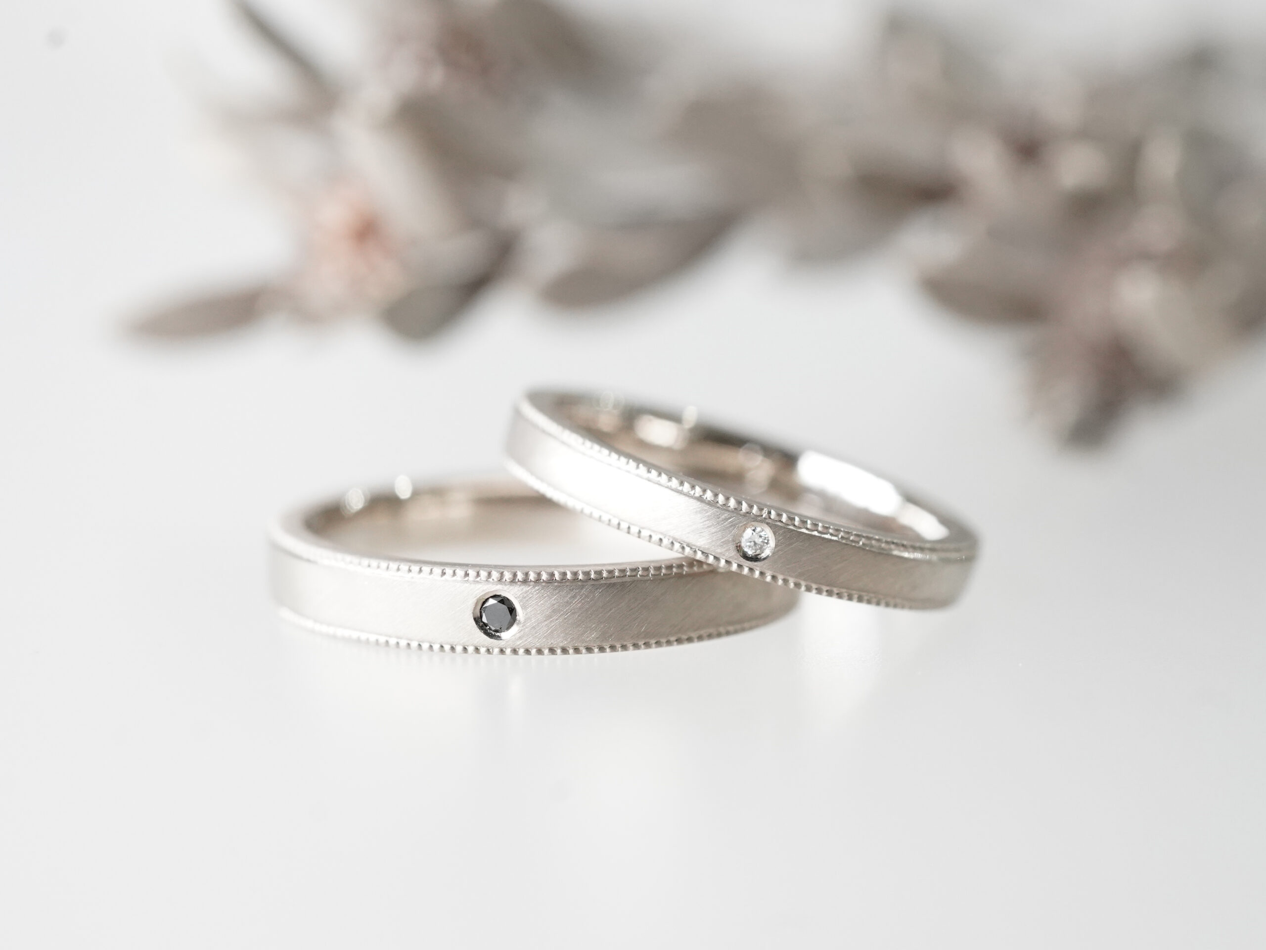 アンティークな風合いに、そっと個性が宿るホワイトゴールドのご結婚指輪を手作りコースにてご制作いただきました。