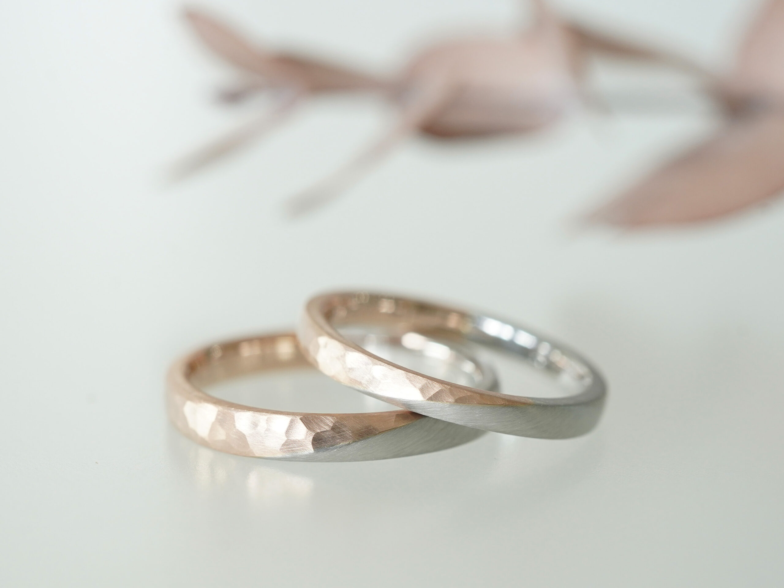 華やかなイメージのコンビカラーリングも、表面を落ち着いたマットに仕上げたことでお手元によく馴染む指輪が完成いたしました。