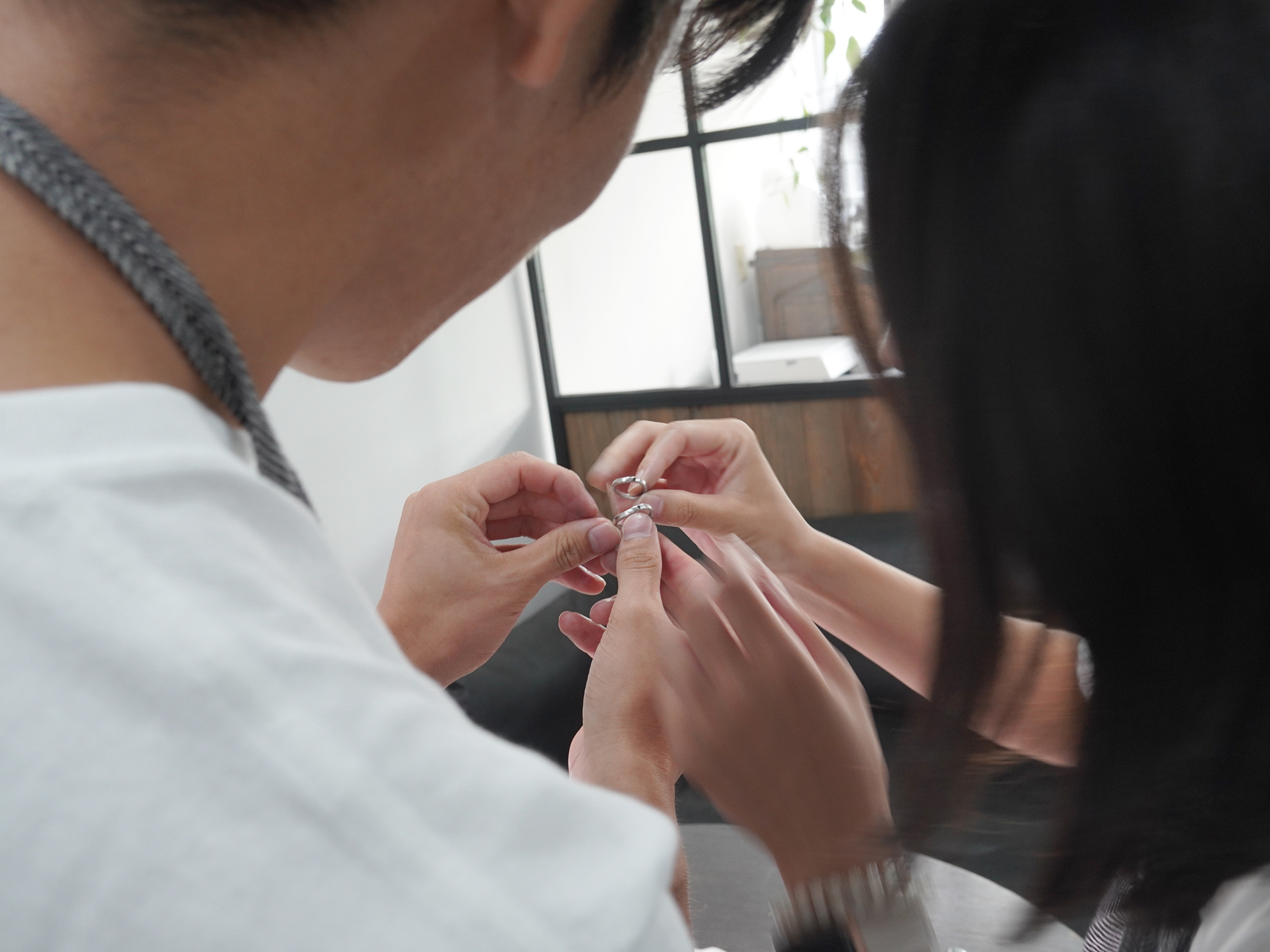 すべての工程が終了しおふたりで指輪を確認。