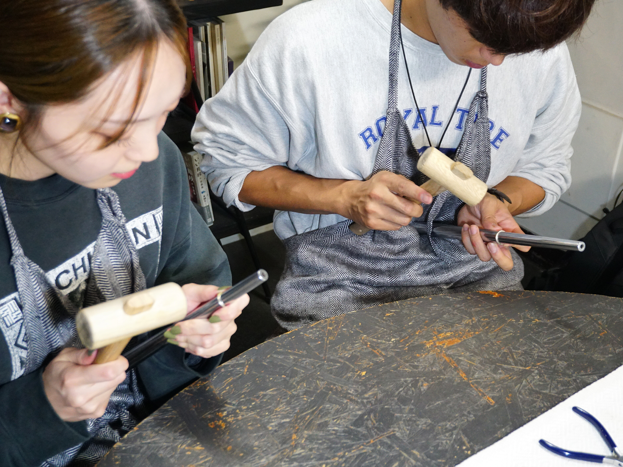 そのため専用の道具にいれて、木槌でトントンカンカン叩いていただきます。